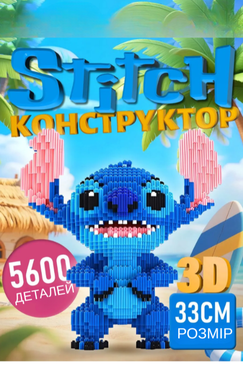 3D конструктор Стіч “Злий” — це унікальний набір із 5600 міні-деталей, що дозволяє створити яскраву об’ємну фігурку висотою 33 см. Конструктор відрізняється високою деталізацією та реалістичним дизайном, що робить готову модель справжньою окрасою кімнати.